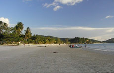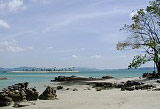 Datai Bay Beach or Pantai Teluk Datai located on a secluded area is at the North-west tip of Langkawi. Typify by boulders at both ends of the beach and dense forest in the background, it slopes gently into the clear turquoise waters and faces directly the little island of Pulau Anak Datai.The bay is home to some of the island's most exclusive resorts and the stunning Datai Golf Course.