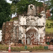 Constructed by the Portuguese in 1511, it suffered severe structural damage during the Dutch invasion. The plan by the British to destroy it was aborted as a result of the intervention of Sir Stamford Raffles in 1808, thus is what remains of the A' Famosa today.