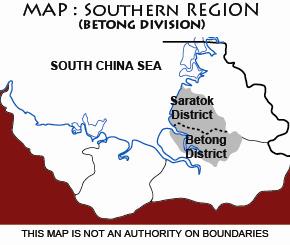 Betong Division situated in Southern Region of Sarawak, East Malaysia, on the island of Borneo encompasses of two (2) districts namely, Betong itself and Saratok. It has an approximate total land area of 4,180.8 square kilometers.